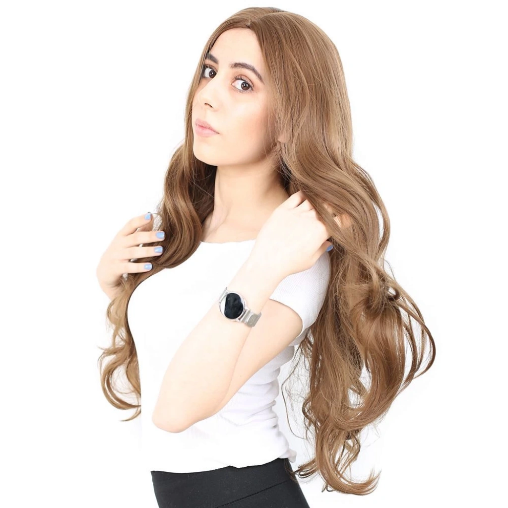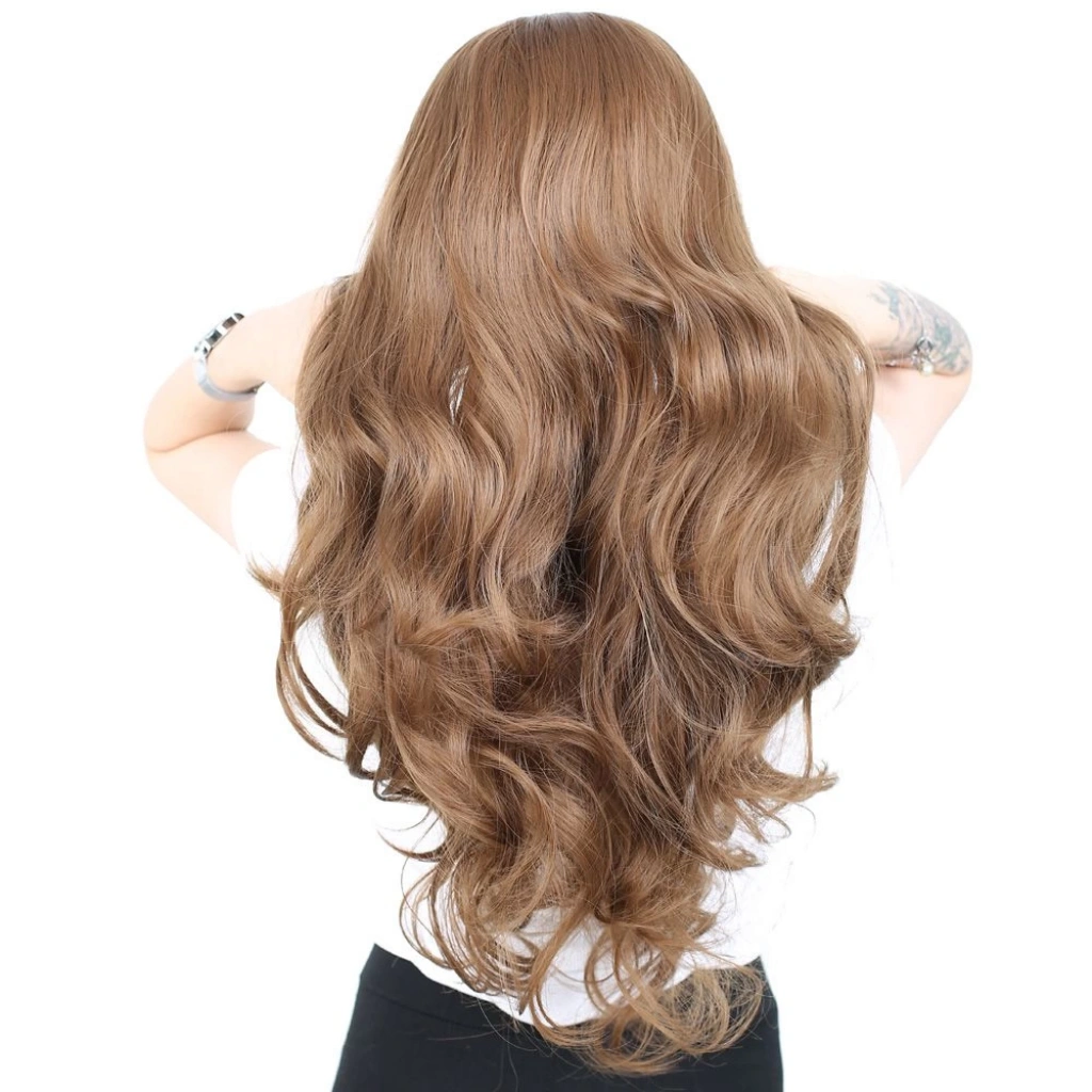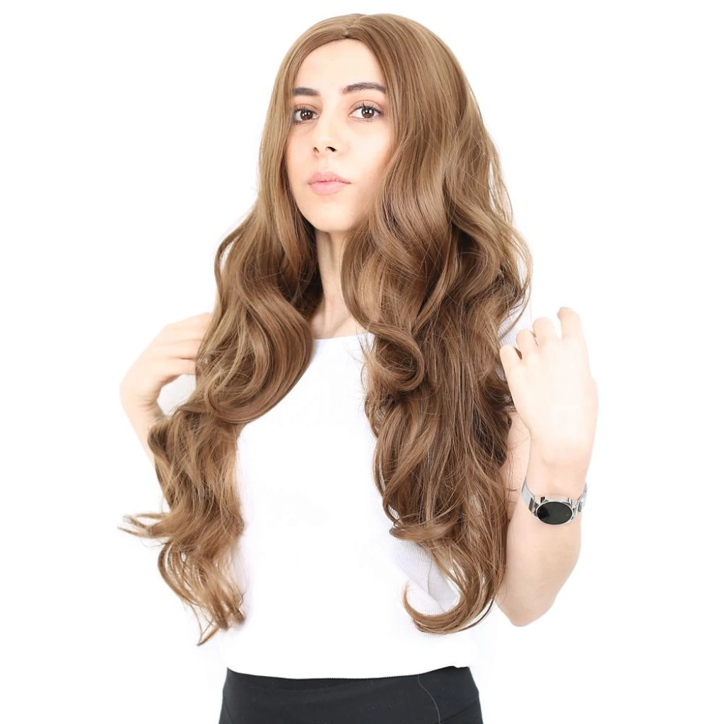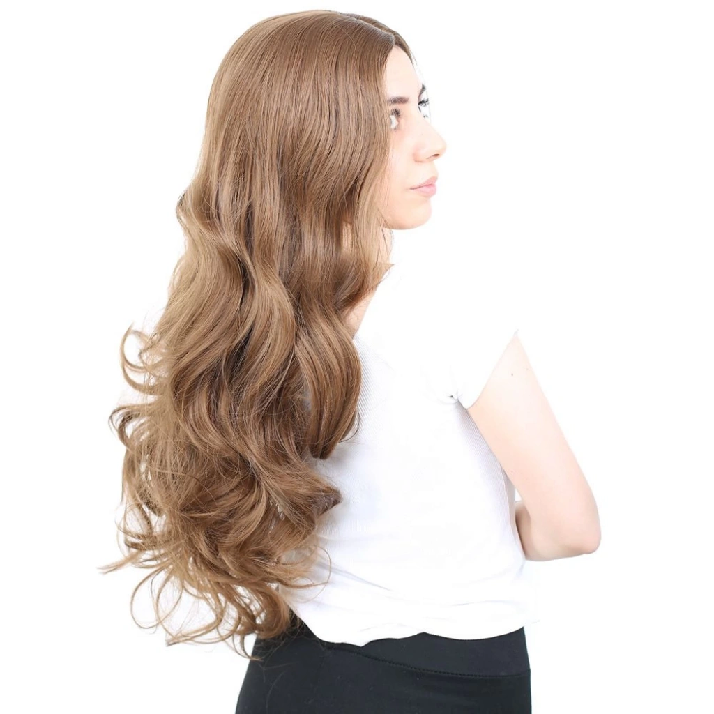 Yoğun Dalgalı Fiber Sentetik Uzun Perçemsiz Peruk - Kumral