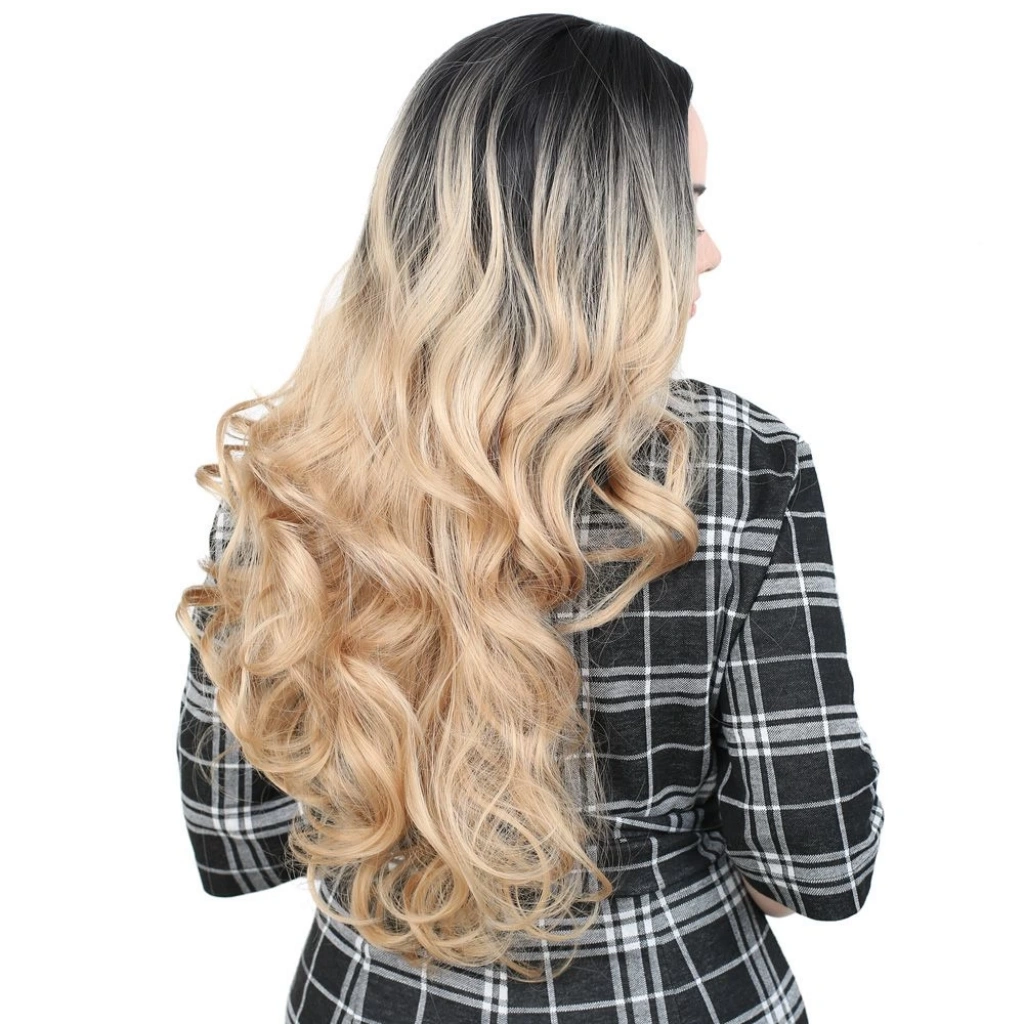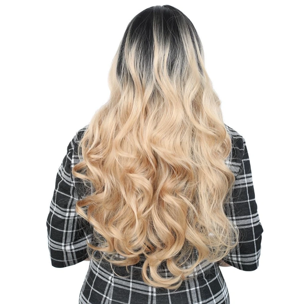 Yoğun Dalgalı Fiber Sentetik Uzun Perçemsiz Peruk - Siyah / Balköpüğü Ombreli
