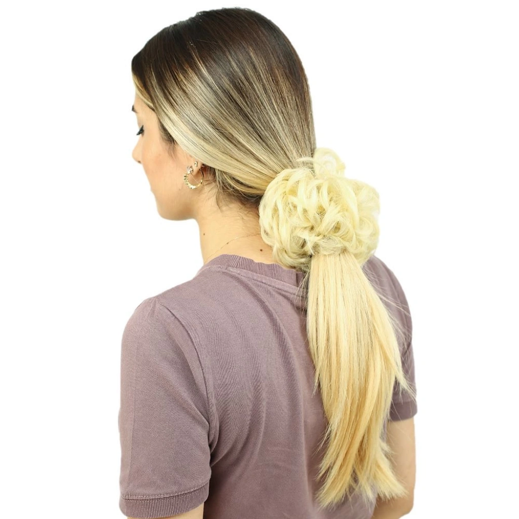 Yoğun Saçlı Lastikli Topuz Toka - Bebek Kumralı