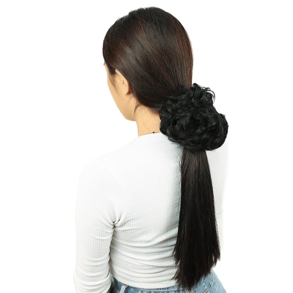 Yoğun Saçlı Lastikli Topuz Toka - Siyah